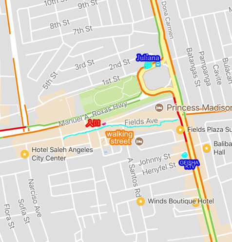 地圖上淺藍色的道路就是 Go Go Bar 分佈的 Fields Ave,