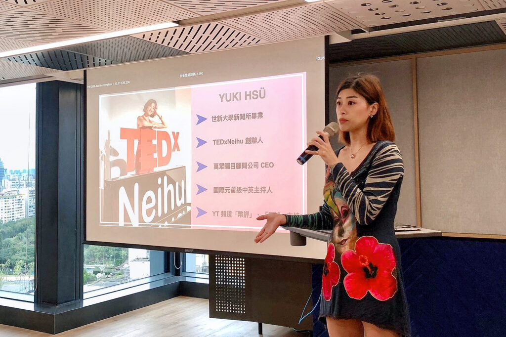 線下教學 In-Person Training 專為需要深度互動與實戰演練的學員或團隊設計,提供小班制或企業內訓的現場課程,課程以「表達力」、「主持控場」、「自信演練」等核心主題為主軸,強調體驗式學習、即時回饋與現場實作,讓學員能在互動性高的環境中持續進步,快速累積上台實力與自信心。 Learn More 演講邀約 Speaking Engagements 曾受邀於青商會、各大企業內訓、社團活動及大專院校進行專題演講。包含主持司儀培訓、跨文化溝通、自媒體經營、職場溝通減壓…等多元主題分享,配合安排1 ~ 6小時 講座或工作坊,演講風格親切又具洞察力,善於引導觀眾思考、互動與自我覺察,激發更多人生可能性,協助聽眾打開多元視角,勇敢打造屬於自己的舞台。 Learn More 顧問服務 Coaching & Consulting 顧問服務融合 15 年以上品牌、主持、策展與培訓經驗,協助個人或企業打造專屬影響力。無論是個人品牌定位、演講訓練、主持表達、自媒體策略,還是團隊內訓與領導力發展,都能依需求量身設計,協助快速突破現況、強化專業形象。服務可單次策略諮詢,或採中長期輔導,從目標設定到實戰演練,全方位支持成長。✨ 內容皆可客製化,歡迎來信討論,打造最符合需求的專屬計畫。 Learn More